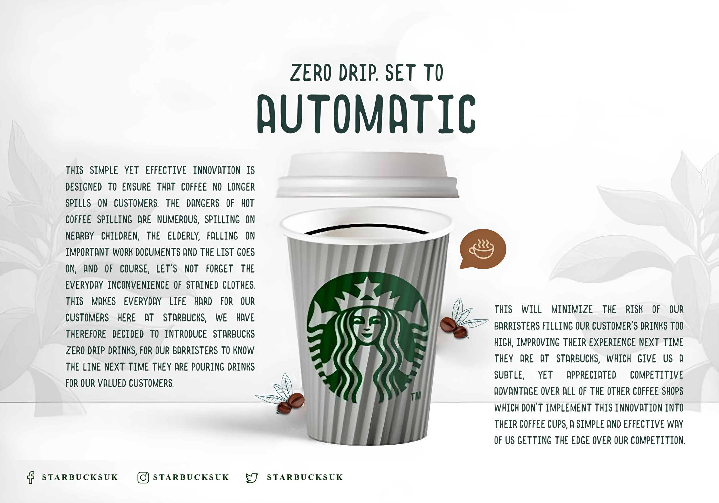 "Zero drip. Set to automatic" Campaign for Starbucks Takeaway Cups